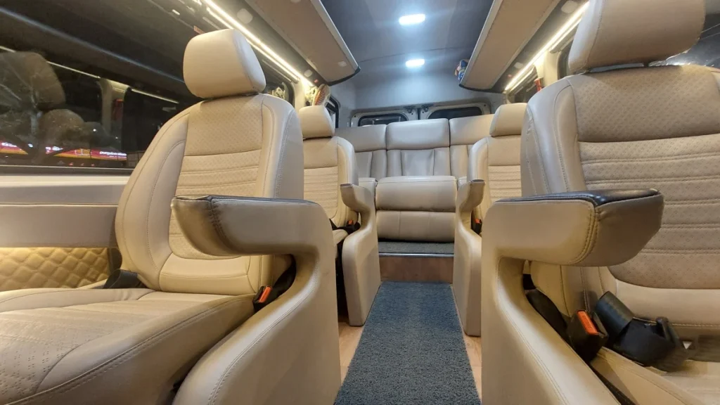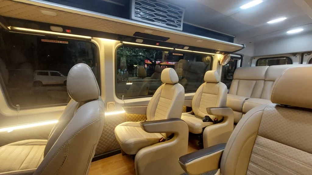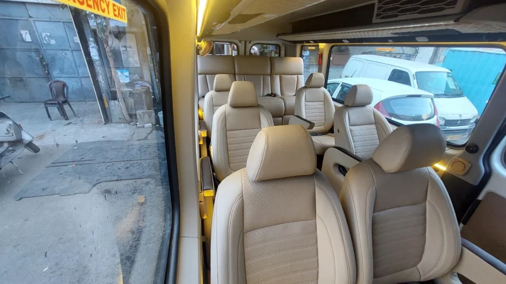 Need a 9 Seater Sleeper Maharaja Urbania that lets you actually rest during the drive? Our Maharaja 1×1 Urbania with sleeper is built for long journeys where comfort matters. Six ventilated seats, three sleeper recliners – everyone travels their way.